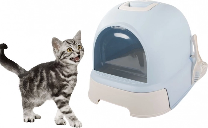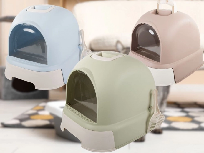 Zaprt mačji WC z izvlečno posodico in filtrom