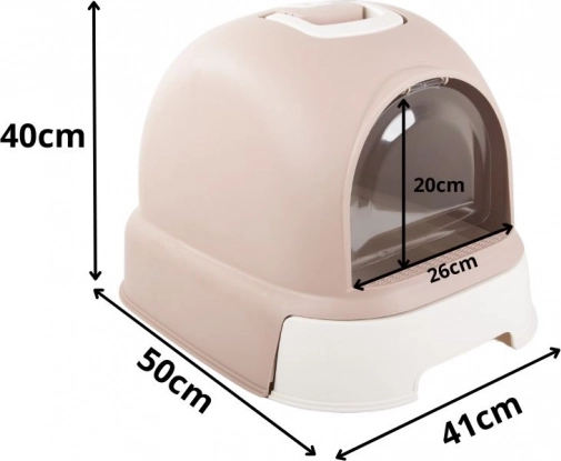 Zaprt mačji WC je zasnovan za maksimalno higieno in udobje. Zaradi zaprte zasnove posip ostane znotraj, vonjave pa učinkovito absorbira ogljikov filter. Prozorna vratca nudijo zasebnost in omogočajo hitro vizualno kontrolo.