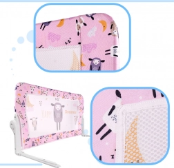 Namestitev je hitra in brez vrtanja – nogi preprosto potisnete pod vzmetnico. Nežen rožnat dizajn z motivom ovčk se poda večini interierjev in polepša otroško sobo. Ograja je idealna za prehod iz posteljice na veliko posteljo ter pomaga staršem in otrokom spati mirneje in varneje.