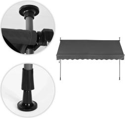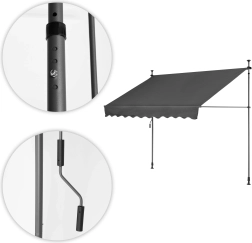 Nastavljiva balkonska senčna tenda z ročnim ročajem, siva