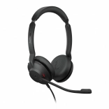 Jabra Evolve2 30 SE je zanesljiva izbira za vsakodnevne klice in osredotočeno delo. Ergonomna zasnova s spominsko peno, na novo oblikovane ušesne blazinice in nizka teža zagotavljajo celodnevno udobje ter odlično pasivno zvočno izolacijo. Dva napredna mikrofona jasno zajemata vaš glas in zmanjšujeta okoliški hrup, tako da vas sodelavci in stranke slišijo razločno – v pisarni, doma ali v kavarni.