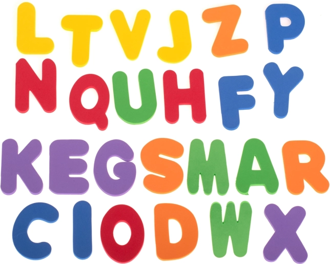 Popoln set za kopalnico ali bazen nudi 26 črk abecede in številke od 0 do 9, ki lahko prosto plavajo na vodi ali pa se, ko so mokre, pritrdijo na kad ali ploščice.