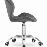 V svoj delovni prostor prinesite udobje in slog s tem elegantnim vrtljivim pisarniškim stolom. Velur oblazinjenje in kromirano podnožje z gumiranimi kolesci zagotavljata tako estetski videz kot funkcionalnost. Ta stol se odlično poda v otroške sobe, studie, pisarne in informacijske centre, zahvaljujoč svoji brezčasni zasnovi in ergonomičnemu dizajnu, ki nudi optimalno podporo hrbtu in telesu.