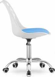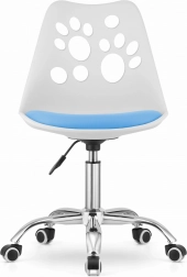 Ta pisarniški stol združuje moderen videz in praktičnost. Bela in modra kombinacija poživi vsak interier.