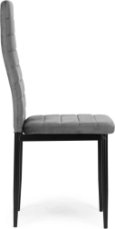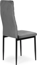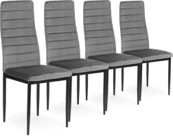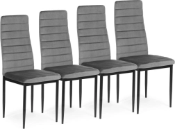 Set štirih oblazinjenih stolov predstavlja eleganten in sodoben element vsakega interierja. Ti stoli ponujajo odlično udobje zahvaljujoč oblikovanemu naslonu in visokokakovostnemu polnilu iz pene. Opremljeni so z ravnimi, črnimi kovinskimi nogami za popolno stabilnost in moderen dizajn.