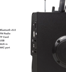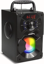 Idealno za prenašanje in uporabo kjerkoli – praktičen ročaj za enostavno prenašanje in kompaktne dimenzije naredijo zvočnik primeren tako za uporabo v notranjih prostorih kot na prostem. Zvočnik napajajo baterije s kapaciteto 2000 mAh, ki zagotavljajo 3–4 ure uporabe, z možnostjo preprostega polnjenja prek USB kabla (5 V, 1 A).