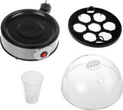 S tem priročnim kuhalnikom jajc pripravite popoln zajtrk brez nadzora lonca. Dovolj je, da dolijete pravo količino vode po merilnem lončku, jajca namestite v držalo in vključite napravo. Vgrajeno ogrevanje z močjo 400 W zagotavlja enakomerno kuhanje, zvočna signalizacija pa vas opozori, ko so jajca gotova.