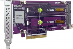 Kartica QNAP QM2-2P-384A doda v združljiv NAS dva reži za M.2 NVMe SSD in takoj pospeši delo s podatki. Zahvaljujoč vmesniku PCIe Gen3 x8 dobite visoko prepustnost do 64 Gb/s za pospeševanje predpomnilnika, ustvarjanje SSD nosilcev in samodejno razslojevanje Qtier.
