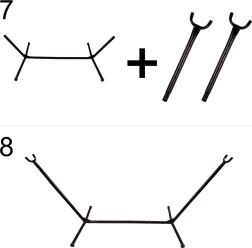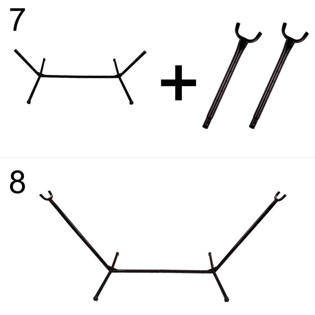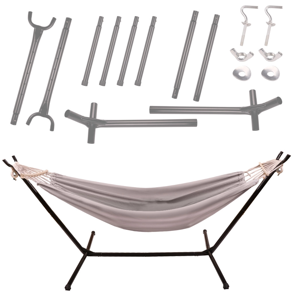 - viseča mreža, kovinsko stojalo (10 delov), montažna orodja, navodila, transportni vak 72 × 18 × 23 cm