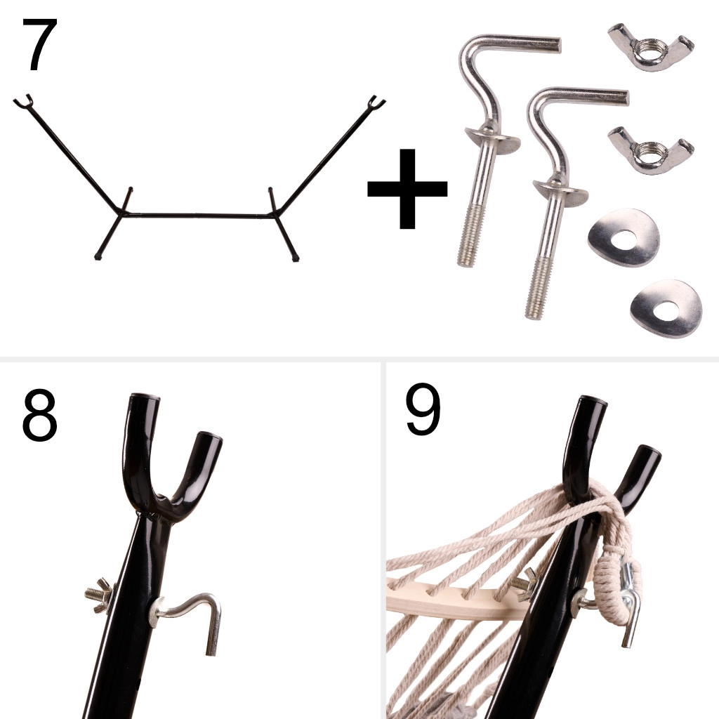 Uživajte v popolni sprostitvi na vrtu, terasi ali balkonu z udobno visečo mrežo na stabilnem kovinskem stojalu. Montaža brez vrtanja, čvrsta konstrukcija, prijetna tkanina in lahko vstopanje zahvaljujoč leseni prečki – idealen prostor za počitek kadarkoli čez dan.