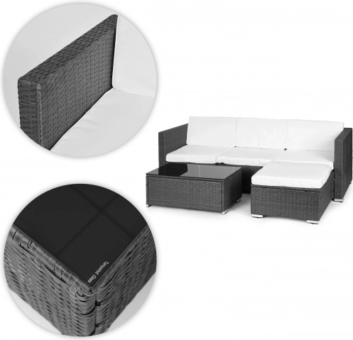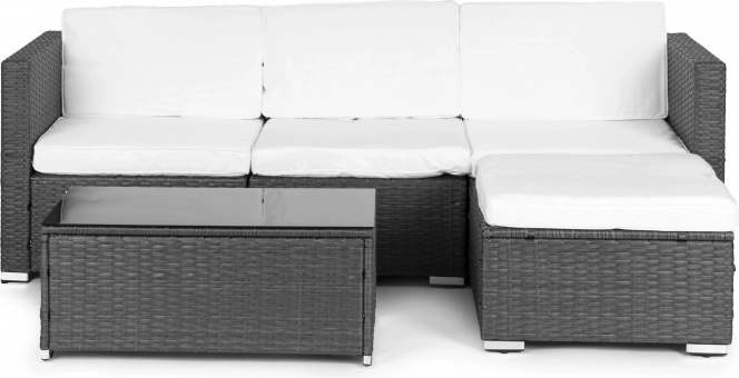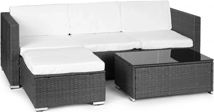 Spremenite teraso ali vrt v prijeten kotiček za sedenje. Ta sedežna garnitura MULTIGARDEN združuje moderen videz tehno ratana z udobjem mehkih blazin in praktično mizico s črno stekleno ploščo. Zahvaljujoč štirim samostojnim modulom lahko sestav zlahka prilagodite prostoru in trenutni priložnosti.