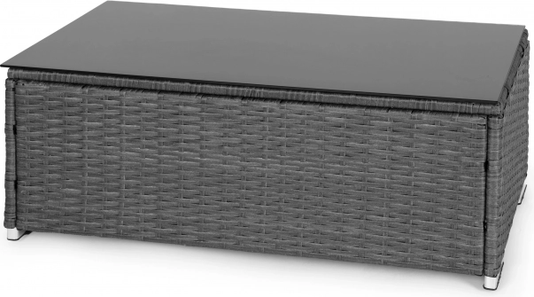 Tehno ratan je barvno obstojen, ne vpija vode in odporen na dež in sonce, zato lahko pohištvo ostane zunaj skozi celo sezono. Kaljeno steklo debeline 5 mm je odporno na poškodbe in varno pri vsakodnevni uporabi. Vzdrževanje je preprosto – obrišite z vlažno krpo.