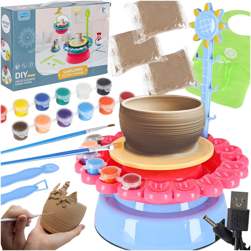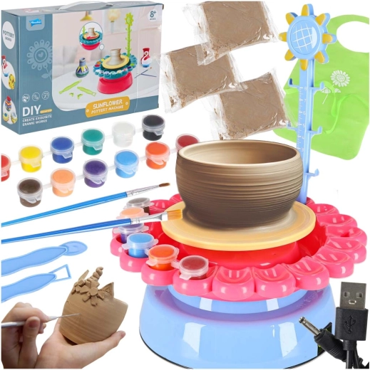 Odkrijte zabaven ustvarjalni set za otroke z električnim lončarskim kolutom, 600 g gline in 12 barvami. Idealen za prve keramične poskuse, razvoj fine motorike in domišljije. Zahvaljujoč napajanju prek USB ali 4× LR20 bodo otroci uživali v udobnem ustvarjanju. Dve hitrosti vrtenja, priložena orodja, čopiči in predpasnik poskrbijo za čisto in veselo ustvarjanje od skled do vazic.