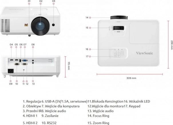 - 1x VGA, 1x avdio 3,5 mm jack, 1x USB Type-A (napajanje 5V/1,5A)