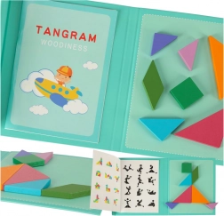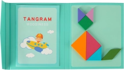 Odkrijte klasično kitajsko uganko v moderni izvedbi. Magnetna knjižica s tangramom združuje praktično potovalno pakiranje s kakovostnimi lesenimi koščki, ki trdno držijo na magnetni plošči. Otroci lahko sestavljajo po predlogah ali si izmišljajo lastne like in figure.