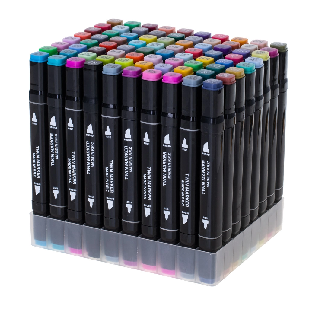 Vse imate vedno pri roki: kompakten etui z zadrgo je idealen za na pot, stabilen podstavek pa ohranja flomastre pregledno razporejene po odtenkih.
