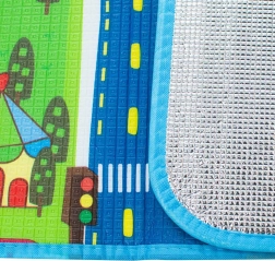 Ta enostranska igralna podloga z mestnim motivom daje otrokom varno mesto za igro. Izolira pred mrazom in ščiti pred trdimi udarci. Podloga je enostavna za prenašanje zaradi termoizolacijske plasti na spodnji strani.