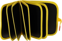 Knjižica se odpre kot etui in zaradi zapiranja na ježka varno ostane zaprta. Lahka in kompaktna – idealna za potovanja in zabavo na poti.