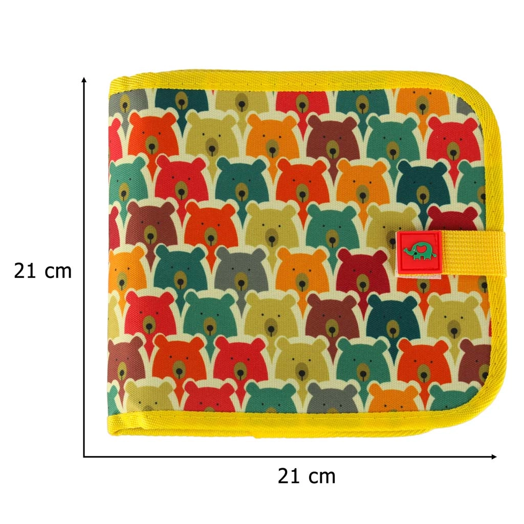 Zaradi vodoodpornih tekstilnih platnic z veselimi motivi medvedkov in zapiranja na ježka je knjižica trpežna, priročna in varno ostane zaprta v nahrbtniku. Podpira učenje črk, številk in svobodno ustvarjalno risanje, s čimer razvija domišljijo in fino motoriko.