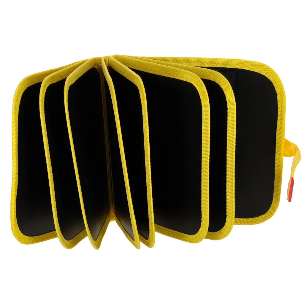 Ta prenosna kredna knjižica je popoln spremljevalec za otroke doma in na poti. Odpre se kot beležka in ponuja 14 črnih tabličnih strani, na katere lahko pišete in rišete s priloženimi krednimi flomastri. Vse preprosto obrišete z vlažno krpico in lahko ustvarjate znova in znova.