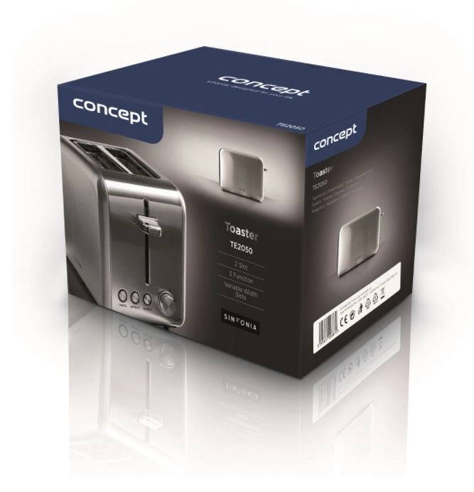 Opekač kruha Concept Sinfonia TE2050 je idealen dodatek k vsaki moderni kuhinji. Zahvaljujoč dvema širokima režama lahko enostavno pripravite tudi debelejše rezine. Elektronski časovnik s 6 stopnjami popečenosti omogoča prilagajanje popečenosti vašim željam.