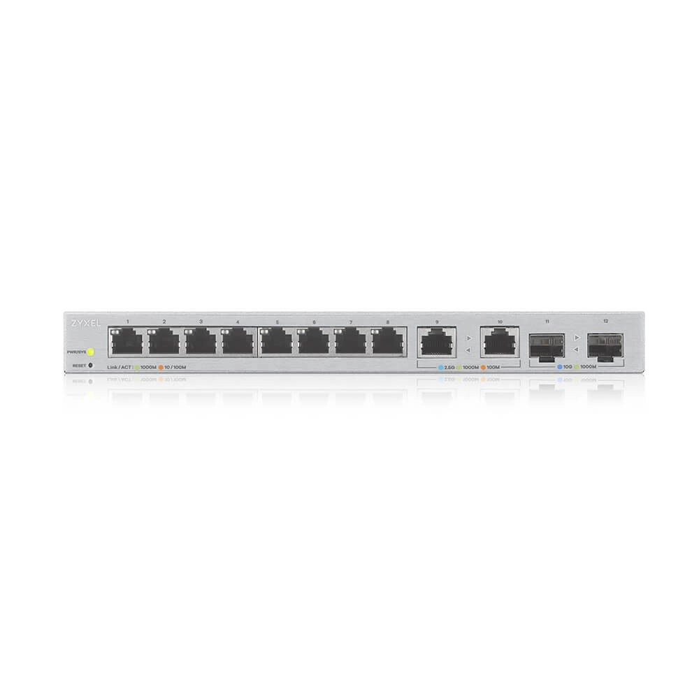 Zyxel XGS1210-12 je opremljen z dvema 10-gigabitnima uplink SFP+ vratoma, dvema 2.5-gigabitnima vratoma in osmimi gigabitnimi Ethernet vrati, kar omogoča zelo visoke hitrosti prenosa podatkov. Povežite dostopne točke 802.11ac ali 802.11ax za maksimalne brezžične hitrosti. Dajte prednost in zaščitite omrežni promet prek vgrajenega grafičnega vmesnika (GUI).