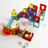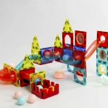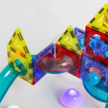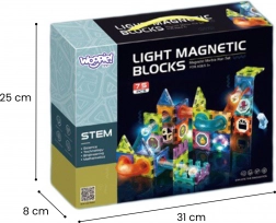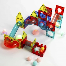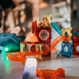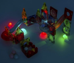Ta magnetna sestavljanka ponuja bogat nabor delov za ustvarjanje izvirnih konstrukcij in dinamičnih krogličnih prog. Zahvaljujoč svetlečim kroglicam in reflektorjem nastane efekten »svetleč« tobogan, ki pritegne otroke in podaljša čas igre. Močni magneti zagotavljajo trdne povezave, zato stabilno držijo tudi zahtevnejše 3D konstrukcije.