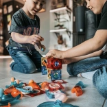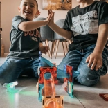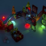 Barvne svetleče kroglice in reflektorji osvetlijo progo ter vsako konstrukcijo spremenijo v privlačen spektakel. Odlično za igro v mraku in za povečanje motivacije otrok za ustvarjanje.