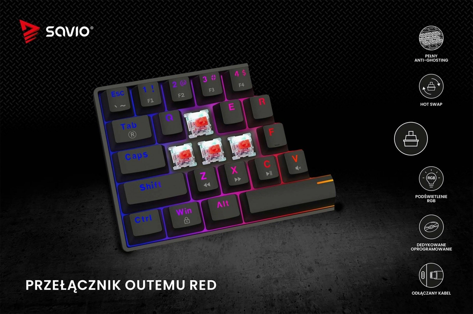 Tipkovnica Blackout X2 je opremljena z odstranljivim kablom USB-C, kar olajša prenašanje in shranjevanje.