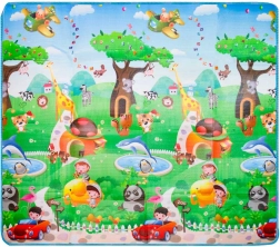 Ta zložljiva podloga iz trpežne EPE pene je idealna kot preproga za otroško sobo ali igralni kotiček. Zahvaljujoč dvostranskemu potisku združuje zabavo in učenje – otroci med igro utrjujejo črke, številke in živalice.
