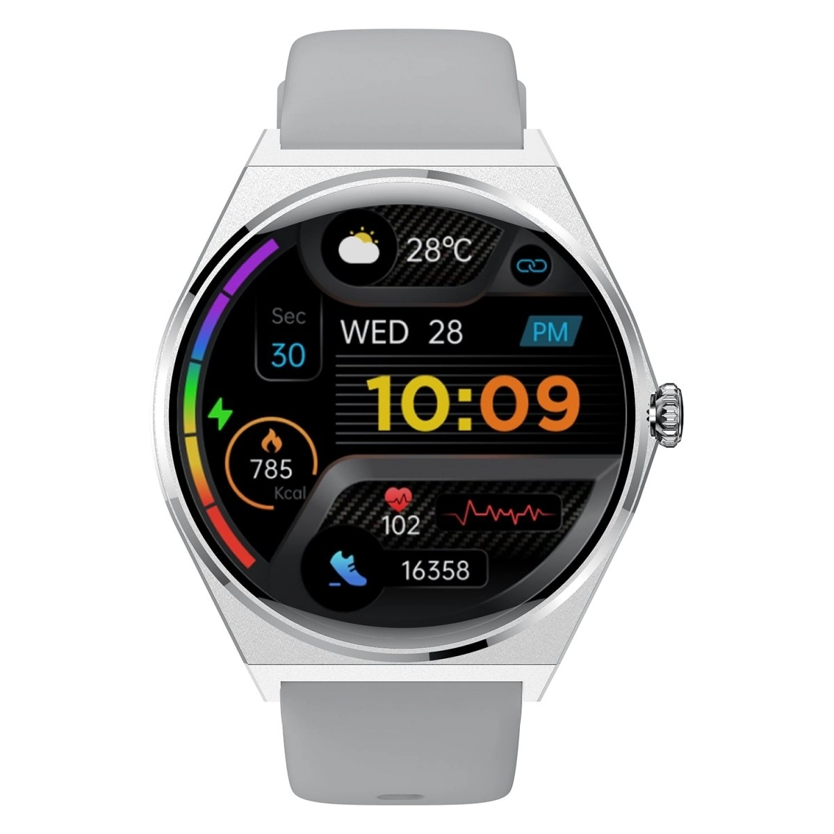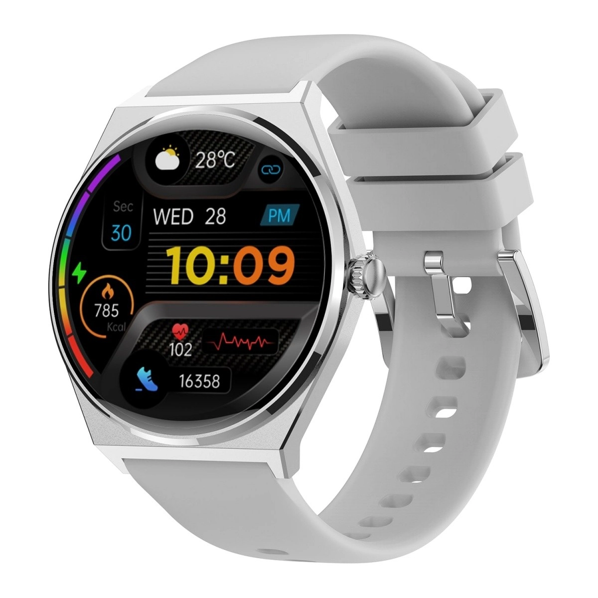 Pametna ura EW05 Srebrna ponuja edinstveno kombinacijo sloga in funkcionalnosti za sodobne uporabnike. Zahvaljujoč HD AMOLED zaslonu boste imeli vse informacije na dosegu roke, medtem ko tanka zasnova zagotavlja udobno nošenje skozi ves dan.