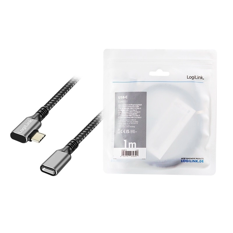 Ta kabel je idealen za podaljšanje obstoječega USB‑C kabla, kar je uporabno za povezavo z zunanjimi napravami, kot so priklopne postaje, pretvorniki ali hubi. Zahvaljujoč kotnemu 90° vtiču prihrani prostor, kar poveča njegovo praktičnost predvsem v omejenih prostorih. Vtičnica USB‑C naprave je hkrati zaščitena pred ponavljajočim se priklapljanjem.