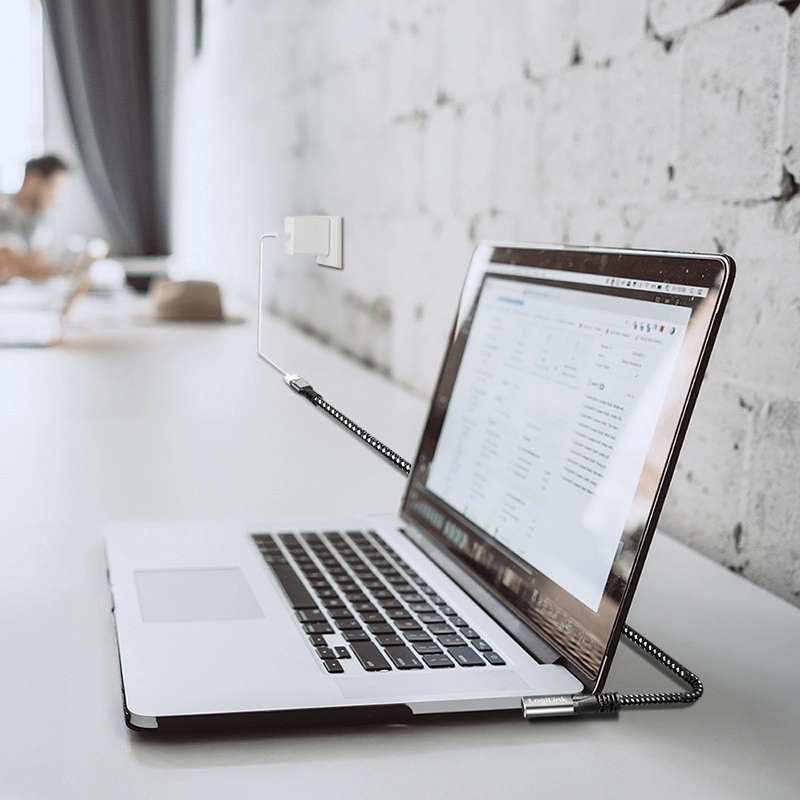 - Kotni priključek USB‑C: Priključek pod kotom 90° olajša uporabo v omejenem prostoru in ščiti napravo pred ponavljajočim priklapljanjem in odklapljanjem.