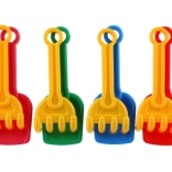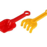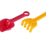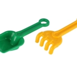 Lopatka in grabljice z gladkimi robovi so prilagojene majhnim otroškim rokam. Primerno od 12 mesecev in idealno za prve igre v pesku.