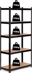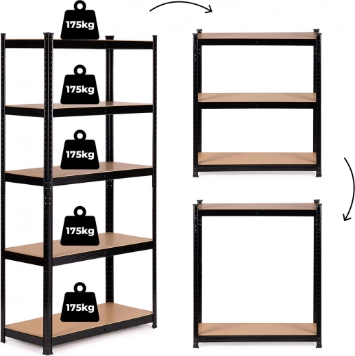 Kovinski regal ModernHome je nepogrešljiv za organizacijo prostora v garaži, delavnici ali kleti. Zahvaljujoč visoki nosilnosti polic (do 175 kg vsaka) lahko brez težav ohranjate red tudi pri težjih predmetih. Idealno za domače mojstre, mehanike in vse, ki želijo maksimizirati shranjevalni prostor.