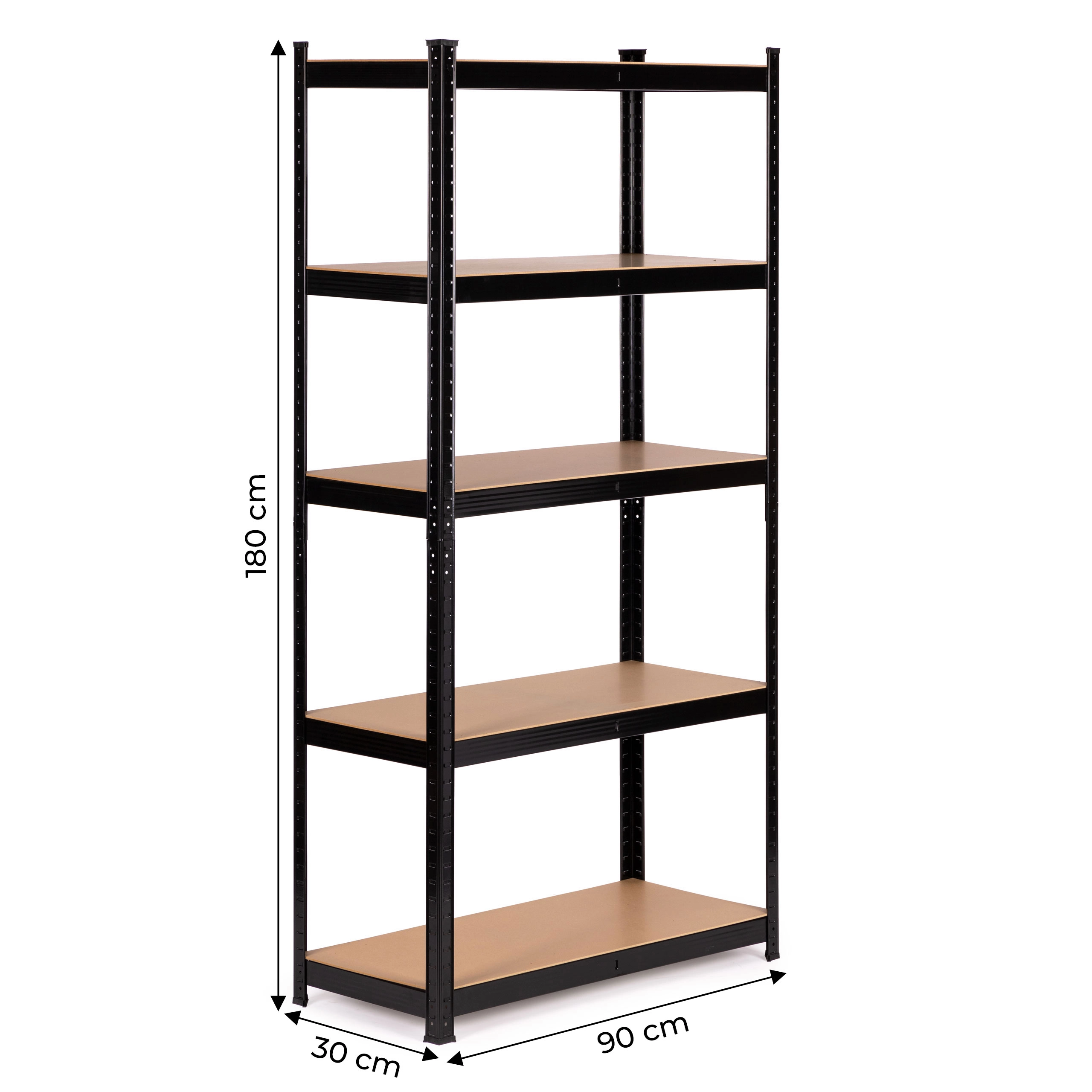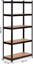 Regal ima 5 vzdržljivih polic, ki jih je mogoče namestiti na poljubni višini, kar omogoča prilagoditev razporeditve vašim potrebam. Konstrukcija je ojačana z dodatnim sredinskim nosilcem pod vsako polico za zagotavljanje stabilnosti.