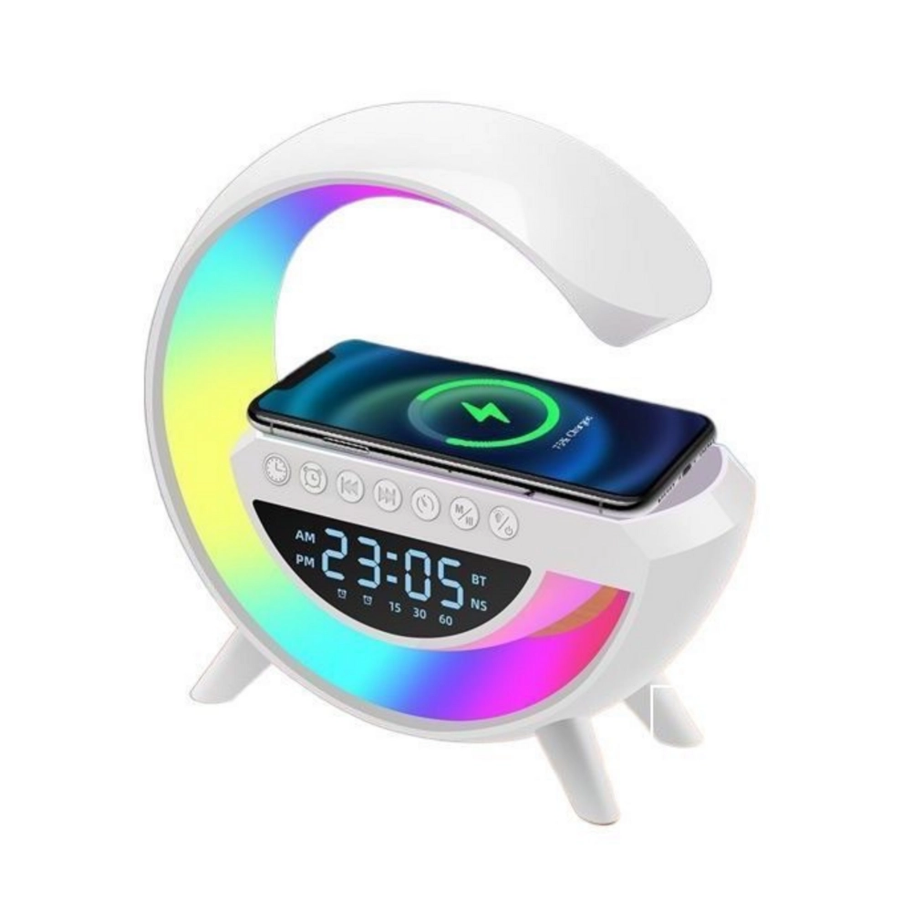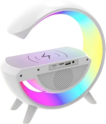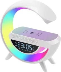 Moderna nočna lučka G63 je idealna oprema za vsako spalnico, otroško sobo ali pisarno. Združuje funkcije pametne osvetlitve, budilke, zvočnika in indukcijskega polnilnika, s čimer nudi udobje in funkcionalnost v eni elegantni napravi. Zahvaljujoč simulaciji sončnega vzhoda je prebujanje bolj naravno in prijetno, kar prispeva k boljšemu počutju že od jutra. Možnost gladkega uravnavanja svetilnosti in izbira različnih barvnih načinov omogočata prilagoditev atmosfere vsaki situaciji – od sprostitve pred spanjem do jutranjega prebujanja.