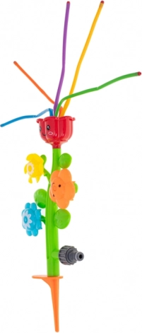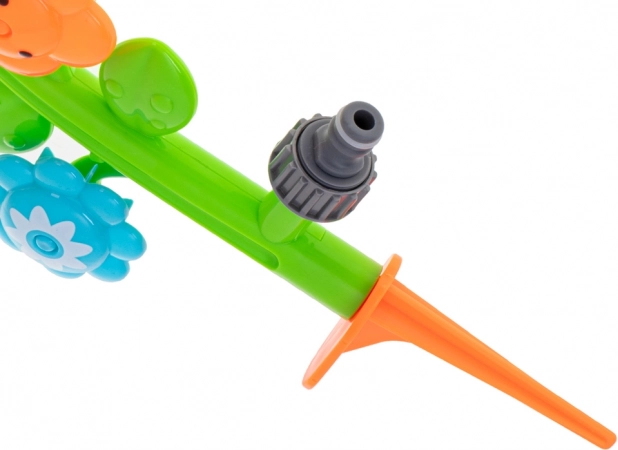 Namestitev je nadvse preprosta: zapičite konico v zemljo, priključite vrtno cev preko standardne hitre spojke in končano. Trpežna plastična izvedba zdrži več sezon, pisane barve pa vedno znova vabijo k igri.