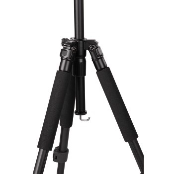 Stativ je opremljen s kavljem na spodnjem delu centralnega stolpca za dodatno obtežitev in stabilizacijo. Gumijaste nogice omogočajo varno in natančno postavitev.