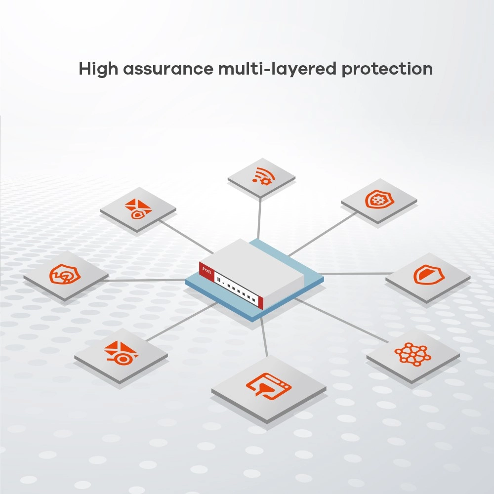 Integracija z Nebula Cloud Management omogoča podrobno nastavitev varnostne politike Zero-Trust Network za organizacije z možnostjo overjanja dostopa in varnega Wi‑Fi. Napredna inteligenca o grožnjah z analitiko vodilnih podjetij povečuje natančnost zaznave s širšo pokritostjo baze zlonamerne programske opreme.