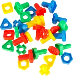 Posamezni vijaki in matice imajo različne oblike, ki jih je treba pravilno ujemati. Zaradi preprostega principa je komplet primeren za predšolske otroke in odlično podpira prostorsko predstavljivost ter potrpežljivost.