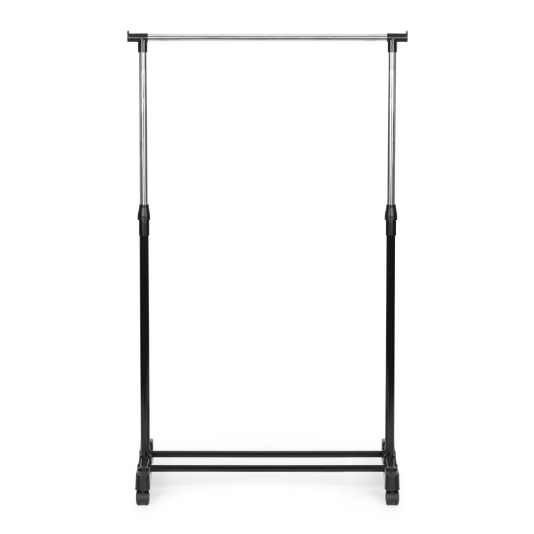 Žepki na koncih nosilne palice stojala zagotavljajo varnost in odpravljajo tveganje nenamernega zdrsa in poškodbe oblačil. Palica služi tudi kot kljuka za obešanje torbic, šali, klobukov in drugih manjših stvari. Garderobno stojalo je opremljeno s štirimi kolesi, od katerih sta dve z zaskočnikoma. To omogoča enostavno premikanje in prilagodljivo organizacijo prostora. To je praktična rešitev, ki omogoča enostavno prilagajanje stojala vašim potrebam.