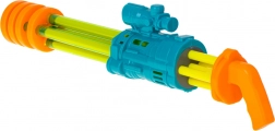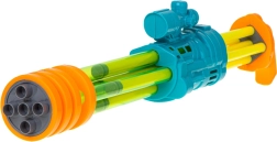 Privlačne barve kot so modra, zelena in oranžna skupaj z dizajnom mini topa pritegnejo pozornost otroka in mu dajo občutek junaštva med igro.