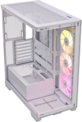 Mid‑tower ohišje Corsair 3500X ARGB ponuja eleganten dizajn s steklenimi paneli in enostavno montažo. Vključuje učinkovito hlajenje s tremi prednameščenimi ventilatorji RS120 ARGB ter upravljanje osvetlitve prek osnovne plošče.