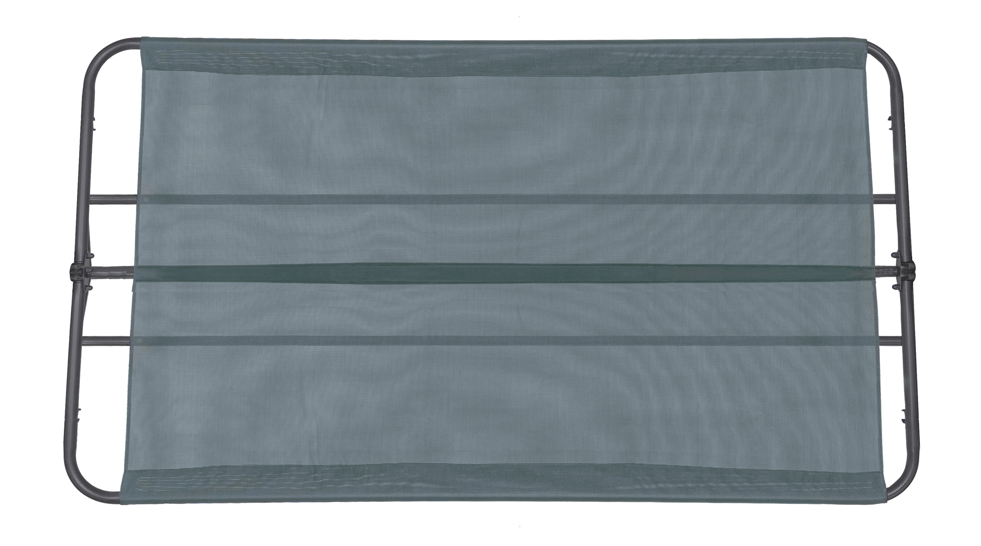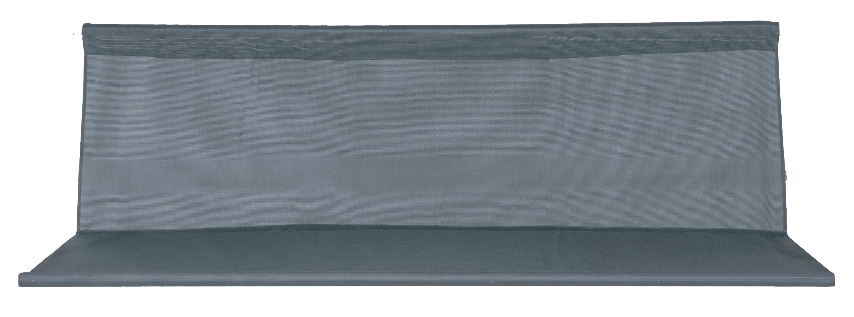 Sivo pleteno sedišče je izdelano iz odporne plastične tkanine tipa 2x1, ki ohranja svoj enoviti videz in kljubuje vremenskim razmeram.