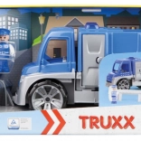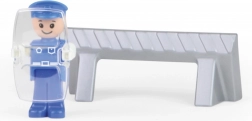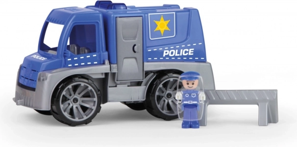 Priložena je aktivna figurica policista s ščitom in cestna zapora, ki otrokom omogoča ustvarjanje lastnih policijskih scenarijev ter vlogo pomagati in zaščititi. Igrača je popolnoma mehanska – brez baterij, samo čista zabava.