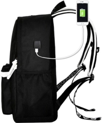 Sodobna oprema vključuje vgrajen USB-priključek za enostavno polnjenje iz powerbanke ter izhod za slušalke 3,5 mm. Glavni predal z dvojnimi zadrgami sprejme knjige, prenosnik ali zvezke, v notranjosti pa je več žepov za drobnarije. V paketu prejmete tudi peresnico, podaljševalni kabel USB in 3,5 mm ter kodno ključavnico za več brezskrbnosti na poti.
