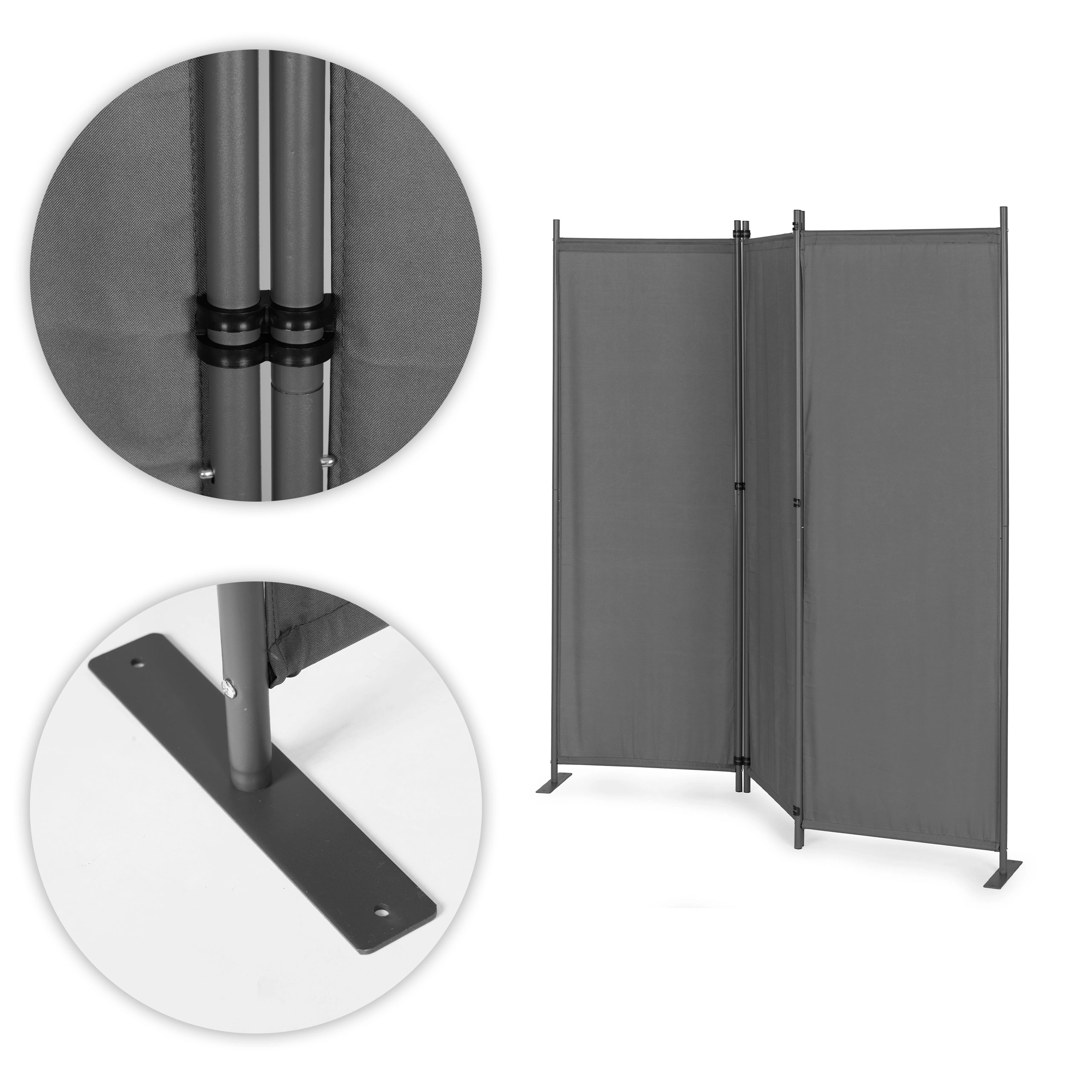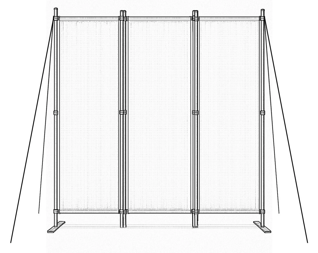 Trdni povezovalni paneli omogočajo gladko zlaganje in razstavljanje, kar vam olajša vsakodnevno uporabo. Stabilna kovinska osnova je opremljena s praktičnimi montažnimi odprtinami za pritrditev na tla, s čimer povečuje stabilnost in preprečuje prevrnitev tudi na neenakomerni podlagi.