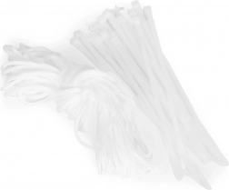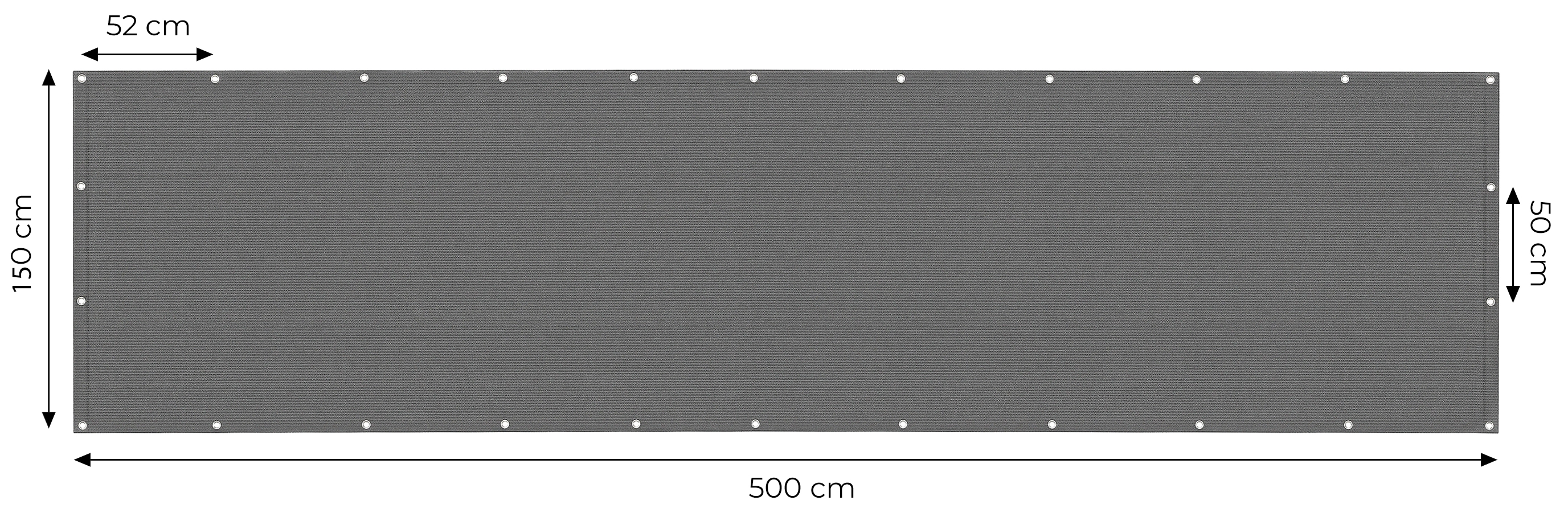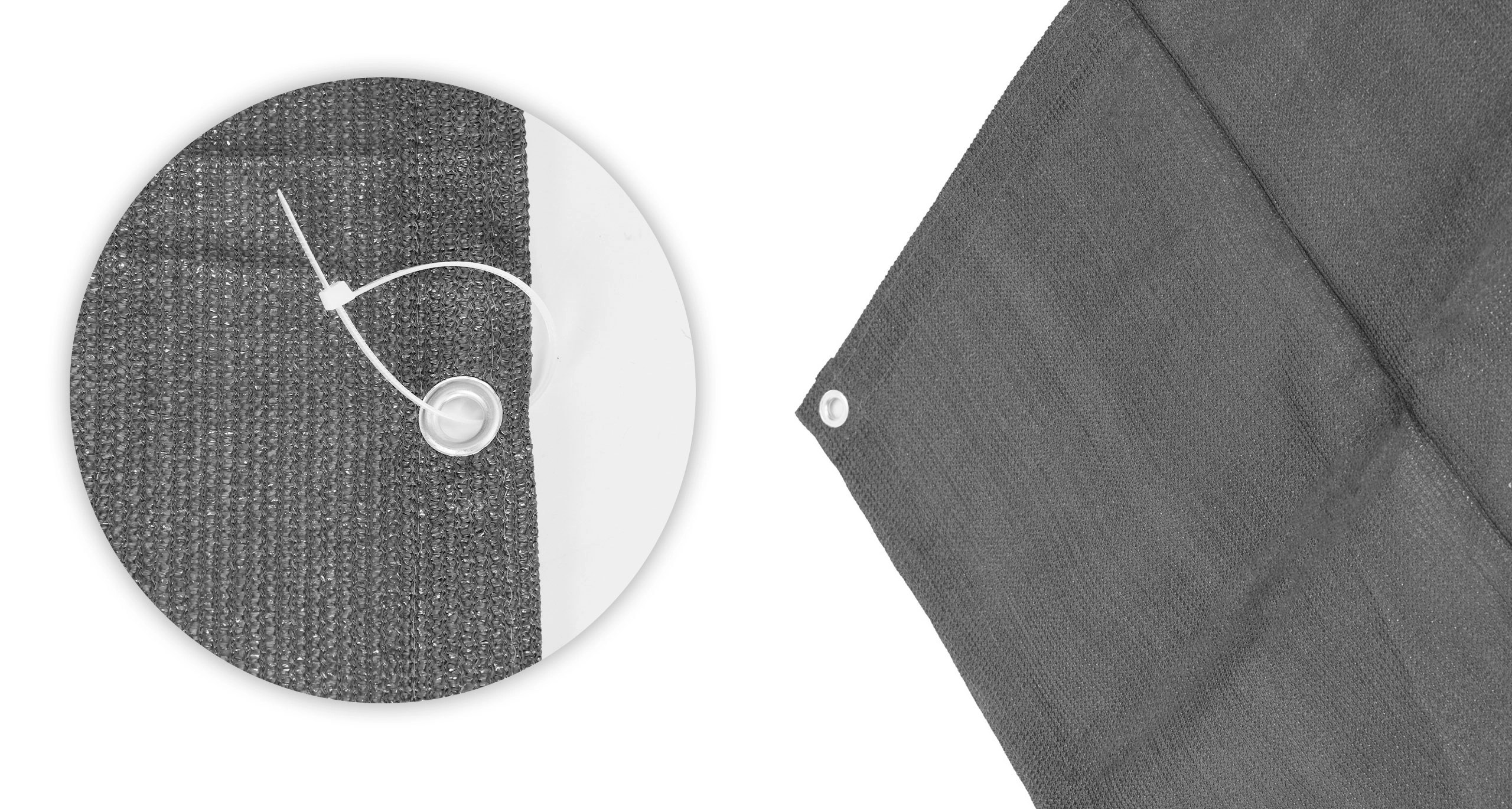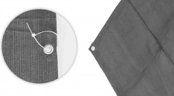 Aluminijasto okovje razporejeno približno vsakih 50 cm ob robovih mreže zagotavlja stabilno in trpežno pritrditev na ograjo. Njihova odpornost proti koroziji ohranja funkcionalnost in estetski videz tudi pri dolgotrajni uporabi na prostem.
