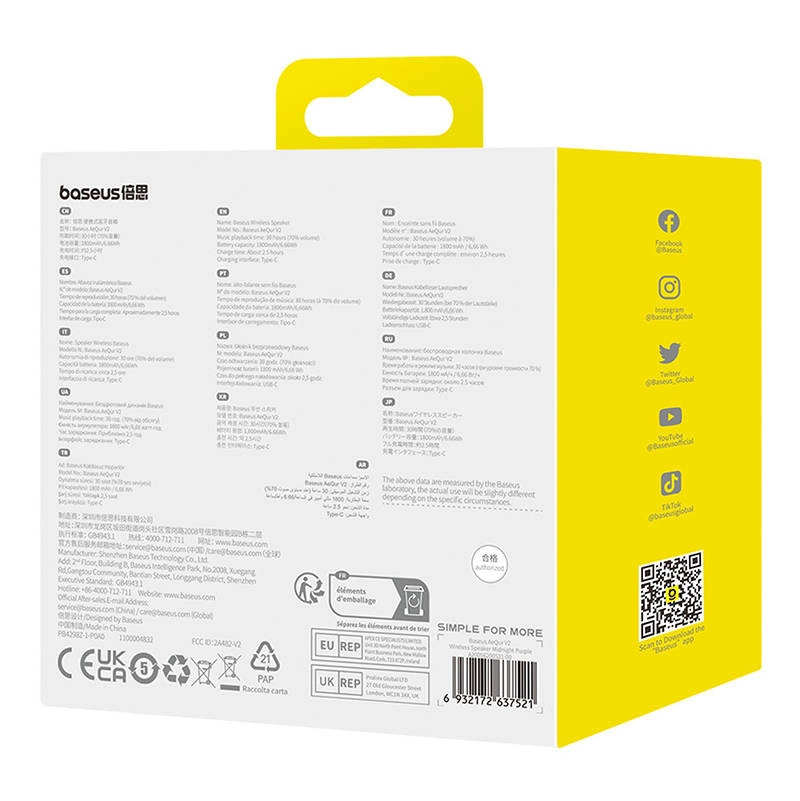 Zaradi kompaktne zasnove in vijolične barve je zvočnik idealen spremljevalec za vsako priložnost – naj bo to piknik na plaži, zabava s prijatelji ali sprostitev ob bazenu. Sledilna plošča na dotik omogoča preprosto upravljanje, preklapljanje skladb in izbiro načinov predvajanja.